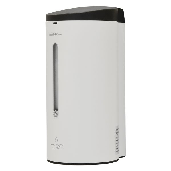 Luxe SaniClean no-touch dispenser. Gemaakt van wit gespoten aluminium.