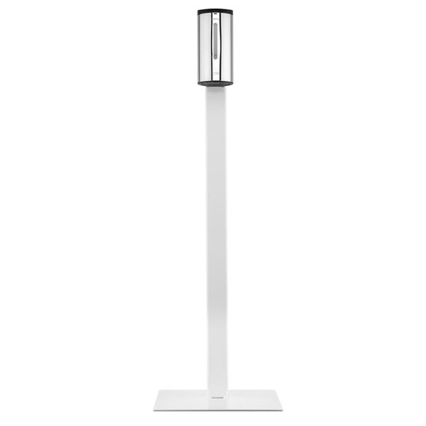 Witte stalen desinfectiepaal voorzien van automatische No-Touch dispenser.